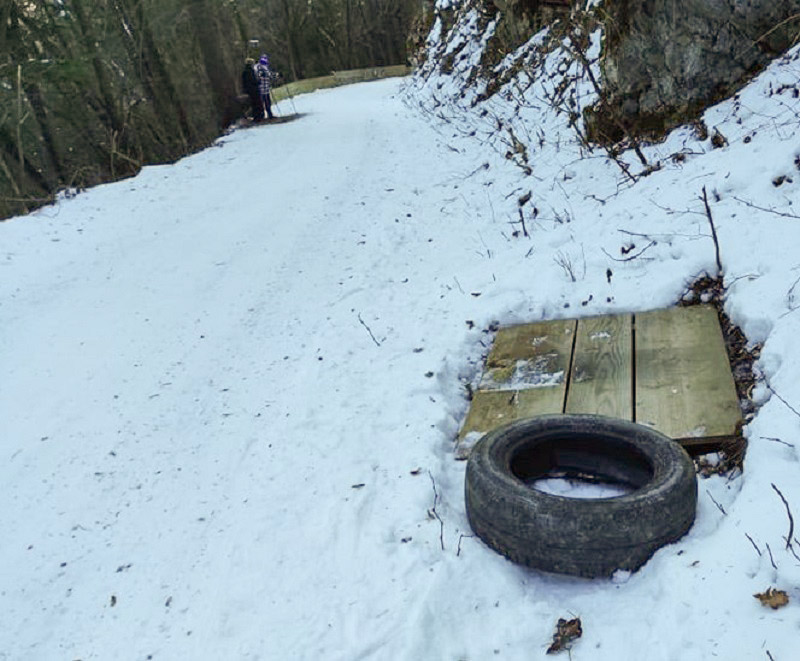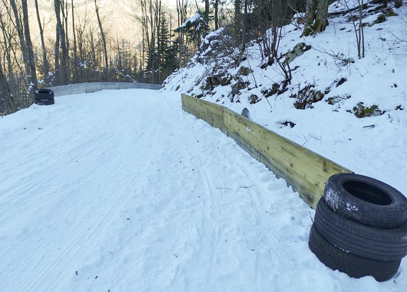 Popoldan– Če uspem dobiti še kakega soborca za namestitev gum, plank in pokrovov, bomo zvečer progo krstili za urejeno. Cesta še ni splužena, prvi sankači pa že na progi.
